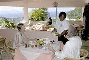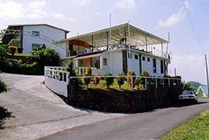 in a lovely residential neighborhood high upon a lush green hill, amidst the cool steady breezes of the trade winds, five minutes drive from the airport and a beach . . . ten minutes from Kingstown . . . and 45 minutes from Wallilabou, our sister hotel.